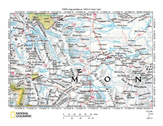- Before proceeding further we need to locate the Montana Dearborn River drainage basin. Figure 1 is a location map showing a large region in central and western Montana. Great Falls is the major city located near the figure 1 center. The shaded green area in the figure 1 northwest corner is the southeast end of Glacier National Park. The east-west continental divide extends in a south-southeast direction from the figure 1 northwest corner to Marias Pass (along Glacier National Park south boundary) and then along or near the Lewis and Clark Range crest to the figure 1 south edge (west of Helena). The Missouri River flows in a north-northwest direction from the figure 1 south center edge (east of Helena) to near Wolf Creek and then turns to flow in a northeast direction to Great Falls, Fort Benton and Loma. South of the town of Big Sandy the Missouri River abruptly turns to flow in a south-southeast and east direction to the figure 1 east edge (north half) with water eventually reaching the Gulf of Mexico. Several Missouri River tributaries from the south tend to be oriented in north and north-northwest directions and in addition to the Missouri River segment upstream from the Wolf Creek area include the north-northwest oriented Smith River. These north-oriented tributary and headwaters valleys were eroded by reversals of flood flow on north ends of south-oriented flood flow channels beheaded by headward erosion of the much deeper Missouri River valley. Missouri River tributaries from the west tend to be oriented in more of an east direction and from south to north these include the Dearborn River, Sun River, Teton River, and Marias River. These major east-oriented Missouri River tributaries originate on the east side of the east-west continental divide and were eroded in sequence with headward erosion of each east-oriented valley beheading south-oriented flood flow channels to what was then the newly eroded east-oriented valley immediately to the south. West of the continental divide are the west-oriented Blackfoot River, north-northwest oriented South Fork Flathead River, and northwest-oriented Middle Fork Flathead River with water in those drainage systems eventually reaching the Pacific Ocean. The north-northwest oriented South Fork Flathead River and northwest-oriented Middle Fork Flathead River valleys were eroded by reversals of flood flow on north and northwest ends of south- and southeast-oriented flood flow channels which were beheaded by headward erosion of the much deeper south-oriented Flathead River valley (west of figure 1). The southeast-oriented Dearborn River drainage basin is located immediately east of the of the southwest and west-oriented Blackfoot River drainage basin and headward erosion of deep valleys in both drainage basins competed with each other in capturing flood flow channels supplying flood water to actively eroding valleys in the other drainage basin.