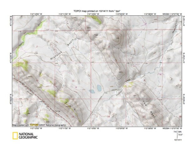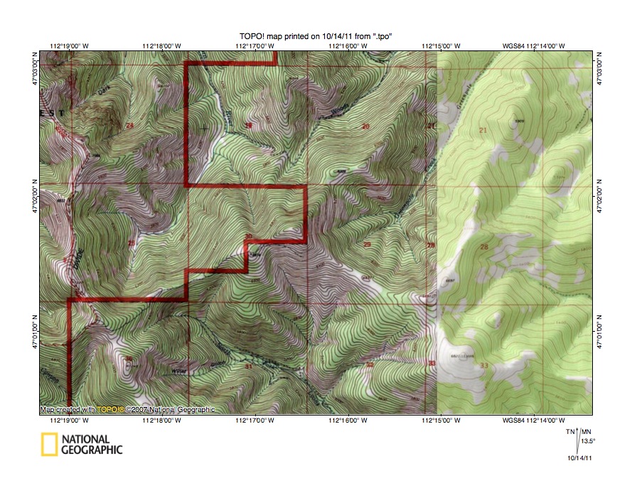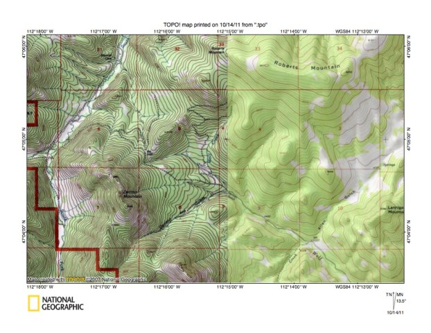 Detailed map of South Fork Dearborn-Wolf Creek drainage divide area