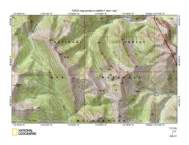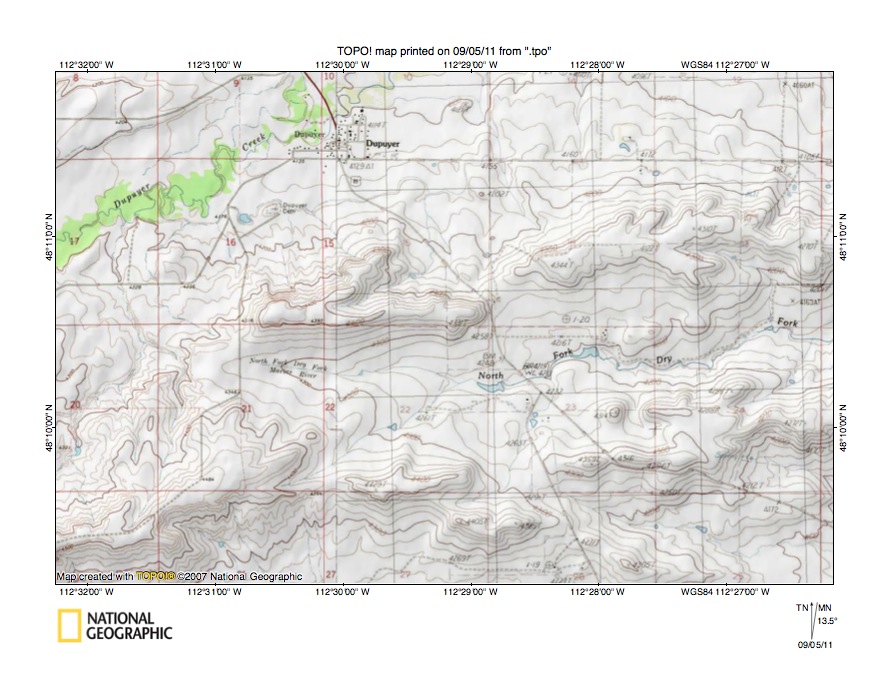 Detailed map of Dupuyer Creek-North Fork Dry Fork Marias River drainage divide area