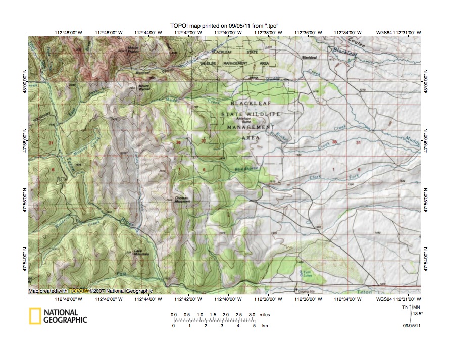 Detailed map of Blacktail Creek-Muddy Creek drainage divide area