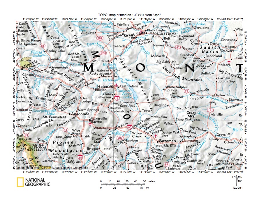 Figure 1: Little Prickly Pear Creek-Missouri River drainage divide area location map (select and click on maps to enlarge). National Geographic Society map digitally presented using National Geographic Society TOPO software.
