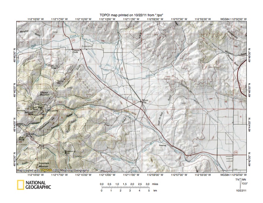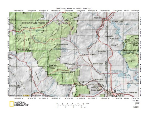 Figure 9: Little Prickly Pear Creek-Silver Creek drainage divide area. United States Geological Survey map digitally presented using National Geographic Society TOPO software.