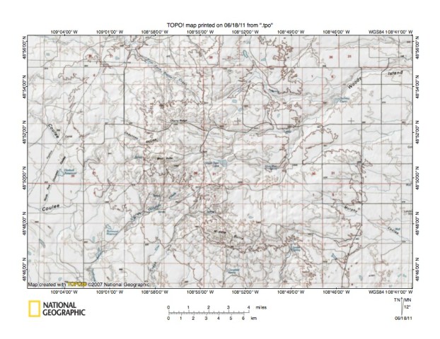 Detailed map Chouteau Coulee-Fifteenmile Creek drainage divide area