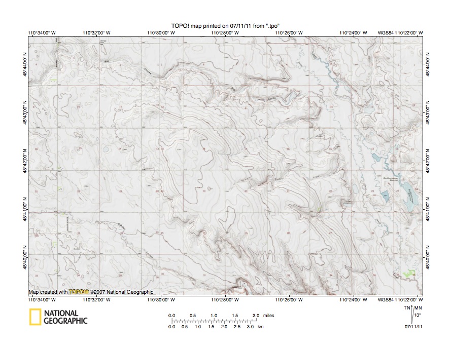 Figure 3: Kennedy Coulee-Sage Creek drainage divide area. United States Geological Survey map digitally presented using National Geographic Society TOPO software.
