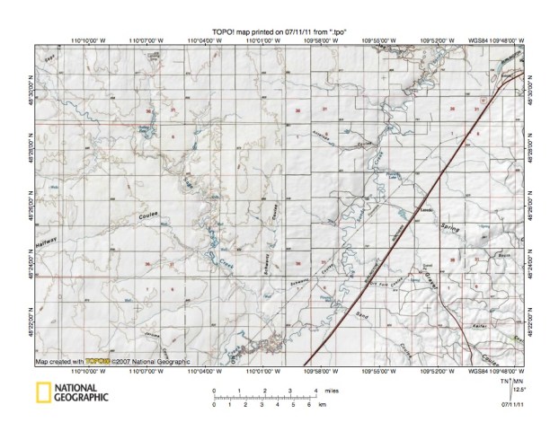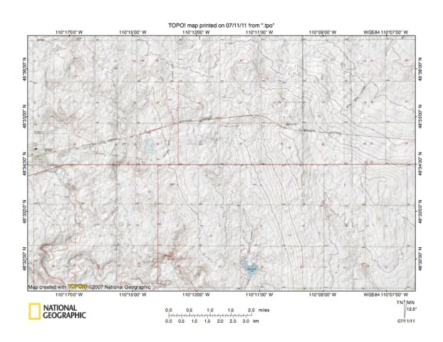 Figure 9: Detailed map of Sage Creek-Milk River drainage divide area. United States Geological Survey map digitally presented using National Geographic Society TOPO software.