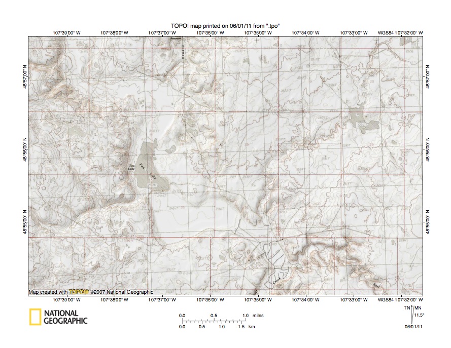 South end of Whitewater Creek-Frenchman River drainage divide area