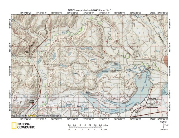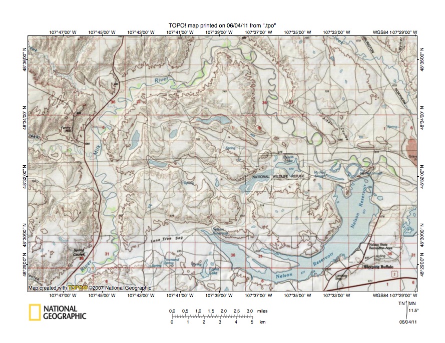 - Figure 10 illustrates the Milk River-Beaver Creek drainage divide area south and west of the figure 9 map area and east of the figure 8 map area and includes overlap areas with both figures 8 and 9. Malta is the town near the figure 10 southwest corner. The Milk River flows in a north-northeast direction from Malta to the figure 10 north edge (west of center). Nelson Reservoir is located along the north edge of the figure 10 northeast quadrant and the south half of Lone Tree Sag can be seen along the figure 10 north center edge and links the north-northeast oriented Milk River valley with Nelson Reservoir. Sleeping Buffalo is a small community (resort) near the figure 10 northeast corner. Beaver Creek flows in a north and north-northeast direction from the figure 10 south edge (just west of the southeast corner) to the figure 10 east edge (south of Sleeping Buffalo). Note how north-oriented Beaver Creek emerges from a large north-oriented valley in the figure 10 southeast quadrant. While Beaver Creek headwaters are west of that north-oriented valley, the north-oriented Beaver Creek valley is the north end of a large through valley extending south to the Missouri River valley (see figure 1) and then continuing south in the form of the north-oriented Musselshell River valley. The north-oriented Musselshell River valley was eroded by reversals of flood flow on the north end of a south oriented flood flow channel moving flood water to what was then the actively eroding Yellowstone River valley. Headward erosion of the deep Missouri River valley captured the south-oriented flood flow channel and triggered the reversal of flood flow that eroded the deep north-oriented Musselshell River valley. Next headward erosion of the deep Milk River valley captured flood flow channels feeding the major south-oriented flood flow channel (as seen in this essay) and triggered the flood flow reversal on the north end of the beheaded flood flow channel to erode the north-oriented Beaver Creek valley. A broad through valley links the Milk River valley in the Malta region with the north-northeast oriented Beaver Creek valley and was once used by southeast and east-oriented flood water to reach first the south-oriented Beaver Creek flood flow channel and for a time after the flood flow reversal to reach the actively eroding and newly reversed north-oriented Beaver Creek valley. Note how the railroad line instead of following the Milk River valley proceeds eastward from Malta through the Lake Bowdoin region to the Beaver Creek valley and then follows Beaver Creek to the Milk River valley east of the figure 10 map area. The railroad is able to use this route without encountering any grades of significance because this was once a major flood flow route. The shallow Lake Bowdoin and other lakes in the region are filling low spots in this large flood eroded lowland.