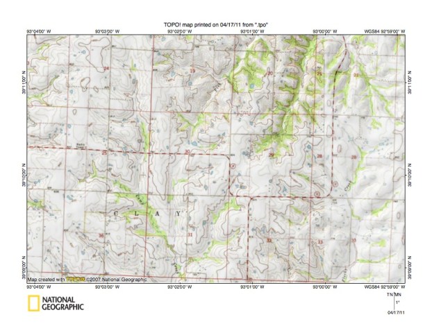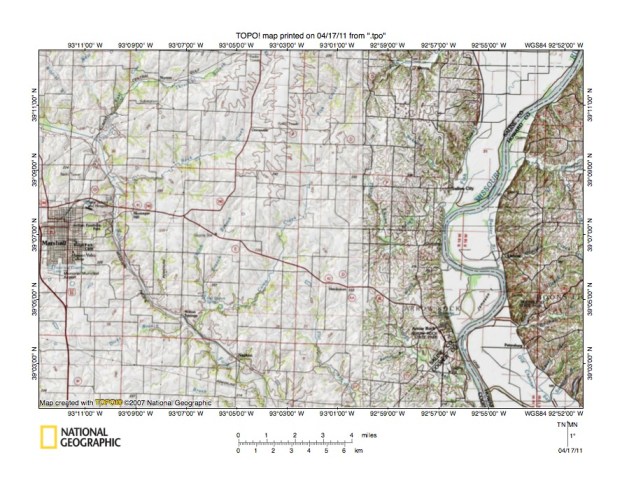 Figure 7: Missouri River-Salt Fork drainage divide area. United States Geological Survey map digitally presented using National Geographic Society TOPO software.