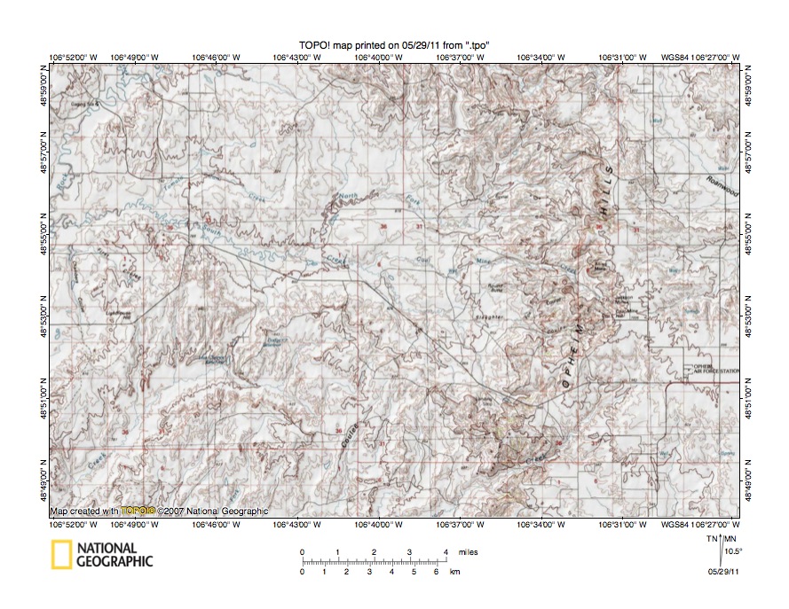 - Figure 1 is a Rock Creek-Porcupine Creek drainage divide area in Valley County, Montana location map and illustrates a region in northeast Montana with southern Saskatchewan to the north. Fort Peck Lake is a large reservoir flooding the Missouri River valley and the Missouri River flows in an east direction from Fort Peck Dam to the North Dakota border along the figure 1 east edge (south half). The Milk River flows from Zurich (near figure 1 west center edge) to Harlem, Dodson, Wagner, and Malta and then makes a jog in a northeast direction before flowing in a southeast direction to Saco, Hinsdale, Vandalia, Tampico, Glasgow, and Nashua before joining the Missouri River downstream from Fort Peck Dam. Porcupine Creek is a south-oriented stream originating near Opheim (just south of the Canada-United States border, near figure 1 center) and joining the Milk River near Nashua, just before the Milk River joins the Missouri River. Rock Creek originates in the Wood Mountain area north of the international border (figure 1 center area) and flows in a south-southwest and south direction to join the Milk River near Hinsdale. Willow Creek is a west and south-southwest oriented Rock Creek tributary. Between Rock Creek and Porcupine Creek is south-southwest oriented Lime Creek, which joins the Milk River near Tampico. [On the more detailed maps Lime Creek is a relatively minor stream and Buggy Creek is the more significant stream in the Lime Creek location.] West of Rock Creek is the east-southeast and south oriented Frenchman River which flows from southern Saskatchewan to join the Milk River near Saco. East of the Porcupine Creek headwaters is the southeast oriented West Fork Poplar River, which flows to the southeast- and southwest-oriented Poplar River, which in turn flows to the Missouri River near Poplar. The Rock Creek-Porcupine Creek drainage divide area in Valley County, Montana is located north of the Milk River, south of the international border, west of Porcupine Creek, and east of Rock Creek. The Wood River-Frenchman River drainage divide area landform origins essay and the Wood River-Poplar River drainage divide area landform origins essay describe regions north of the Rock Creek-Portcupine Creek drainage divide area and the Poplar River-Missouri River drainage divide area landform origins, Daniels, Valley, and Roosevelt Counties essay describes the region directly to the east. Poplar River essays can be located under the MT Missouri category on the sidebar category list and the Frenchman River essay can be located under the Milk River category.