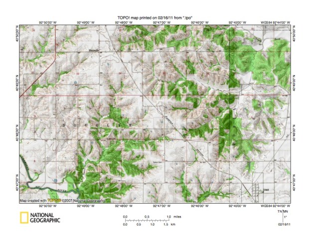 Detailed map of South Soap Creek-Chariton River drainage divide area