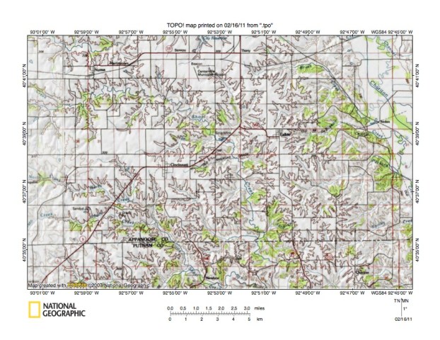 - The purpose of this essay is to use topographic map interpretation methods to explore the Chariton River and tributary drainage divide area landform origins in Appanoose County, Iowa, USA. Map interpretation methods can be used to unravel many geomorphic events leading up to formation of present-day drainage routes and development of other landform features. While each detailed topographic map feature provides detailed evidence to be explained, the solution must be consistent with explanations for adjacent area map evidence as well as solutions to big picture map evidence puzzles. I invite readers to improve upon my solutions and/or to propose alternate solutions that better explain evidence and are also consistent with adjacent map area and big picture evidence. Readers may do so either by making comments here or by writing and publishing their own essay and then by leaving a link to those essays in a comment here.