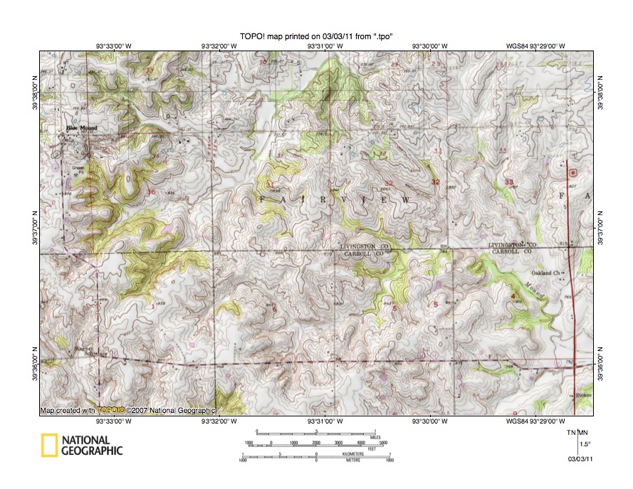 - The purpose of this essay is to use topographic map interpretation methods to explore the Grand River-Missouri River drainage divide area landform origins in Livingston and Carroll Counties, Missouri, USA. Map interpretation methods can be used to unravel many geomorphic events leading up to formation of present-day drainage routes and development of other landform features. While each detailed topographic map feature provides detailed evidence to be explained, the solution must be consistent with explanations for adjacent area map evidence as well as solutions to big picture map evidence puzzles. I invite readers to improve upon my solutions and/or to propose alternate solutions that better explain evidence and are also consistent with adjacent map area and big picture evidence. Readers may do so either by making comments here or by writing and publishing their own essays and then by leaving a link to those essays in a comment here.