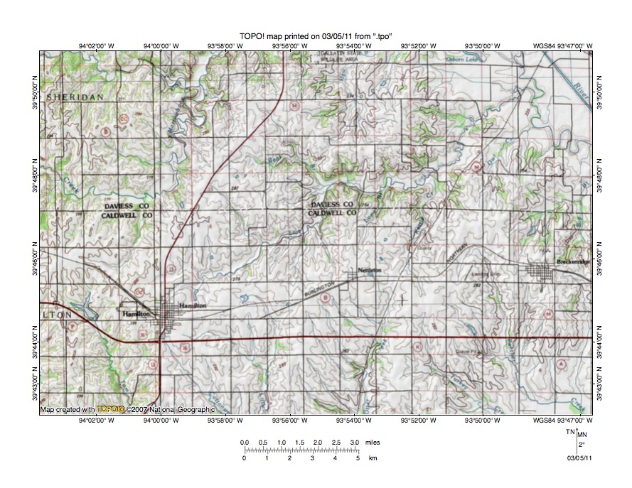 - The purpose of this essay is to use topographic map interpretation methods to explore the Grand River-Shoal Creek drainage divide area landform origins in Daviess, Caldwell, and Livingston Counties, Missouri, USA. Map interpretation methods can be used to unravel many geomorphic events leading up to formation of present-day drainage routes and development of other landform features. While each detailed topographic map feature provides detailed evidence to be explained, the solution must be consistent with explanations for adjacent area map evidence as well as solutions to big picture map evidence puzzles. I invite readers to improve upon my solutions and/or to propose alternate solutions that better explain evidence and are also consistent with adjacent map area and big picture evidence. Readers may do so either by making comments here or by writing and publishing their own essays and then by leaving a link to those essays in a comment here.