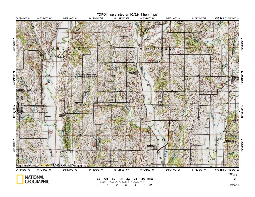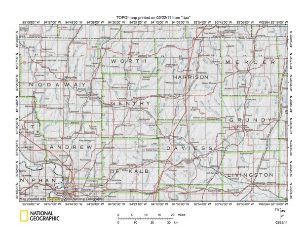 - The purpose of this essay is to use topographic map interpretation methods to explore the One Hundred and Two River-East Fork Grand River drainage divide area landform origins in Nodaway, Worth, and Gentry Counties, Missouri, USA. Map interpretation methods can be used to unravel many geomorphic events leading up to formation of present-day drainage routes and development of other landform features. While each detailed topographic map feature provides detailed evidence to be explained, the solution must be consistent with explanations for adjacent area map evidence as well as solutions to big picture map evidence puzzles. I invite readers to improve upon my solutions and/or to propose alternate solutions that better explain evidence and are also consistent with adjacent map area and big picture evidence. Readers may do so either by making comments here or by writing and publishing their own essays and then by leaving a link to those essay in a comment here.