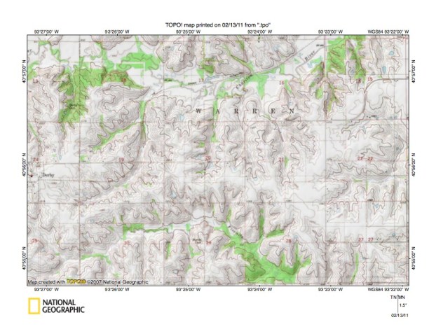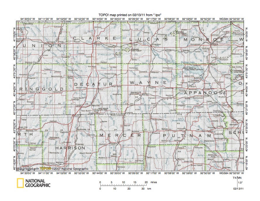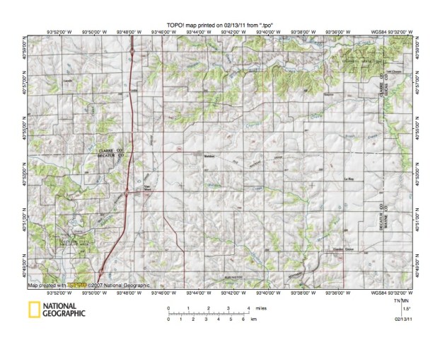 - The purpose of this essay is to use topographic map interpretation methods to explore the Chariton River-Grand River drainage divide area landform origins in Lucas, Decatur, and Wayne Counties, Iowa, USA. Map interpretation methods can be used to unravel many geomorphic events leading up to formation of present-day drainage routes and development of other landform features. While each detailed topographic map feature provides detailed evidence to be explained, the solution must be consistent with explanations for adjacent area map evidence as well as solutions to big picture map evidence puzzles. I invite readers to improve upon my solutions and/or to propose alternate solutions that better explain evidence and are also consistent with adjacent map area and big picture evidence. Readers may do so either by making comments here or by writing and publishing their own essays and then by leaving a link to those essays in a comment here.