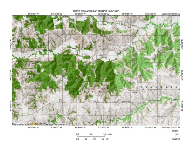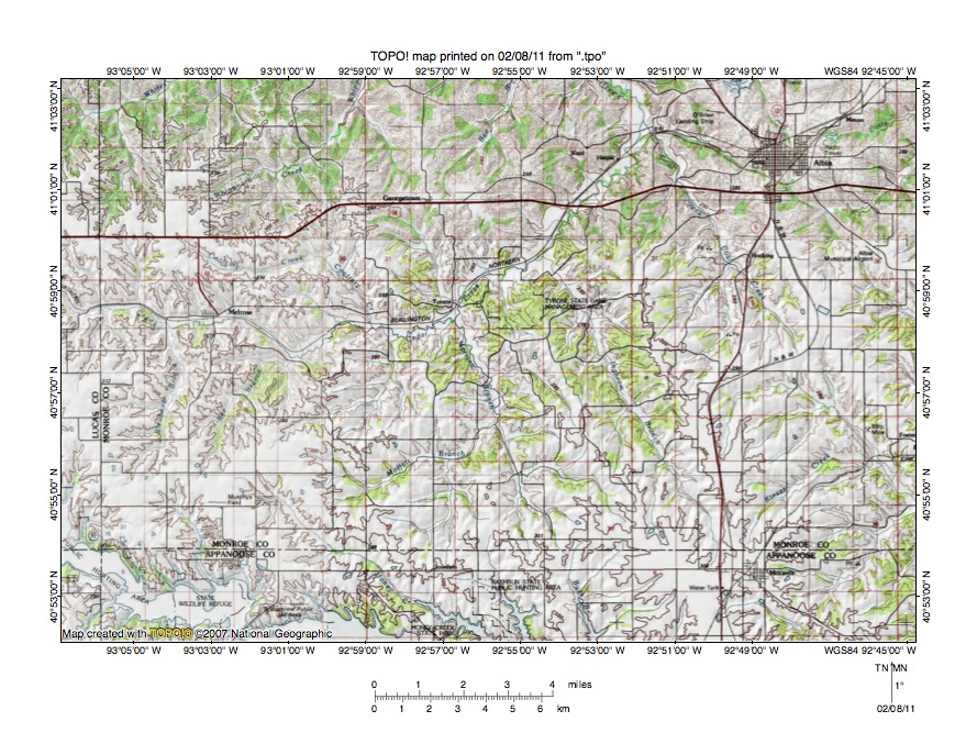 Detailed map of White Breast Creek-Chariton Creek drainage divide area