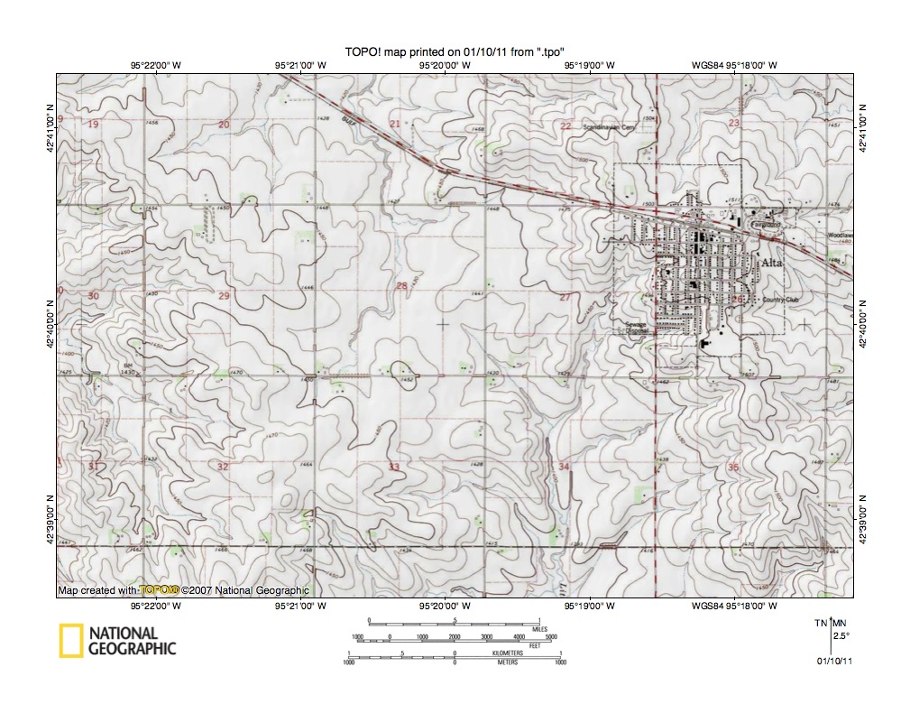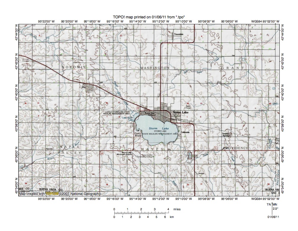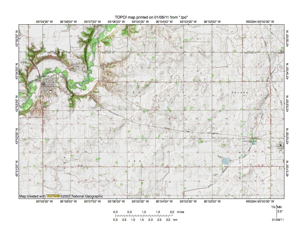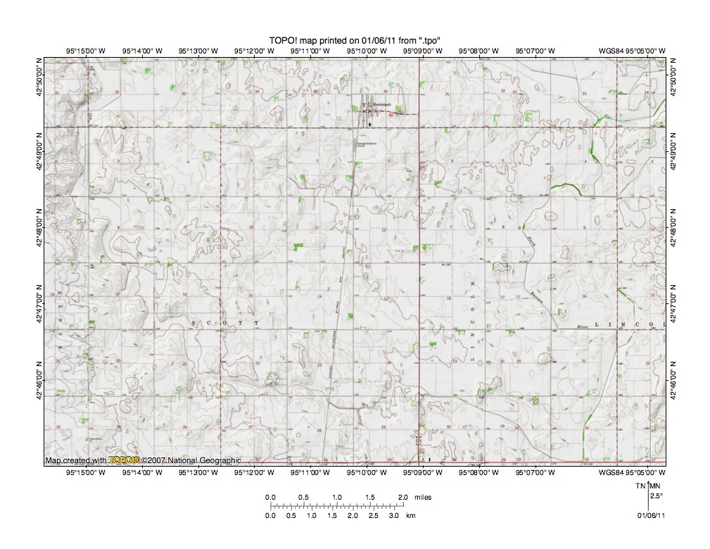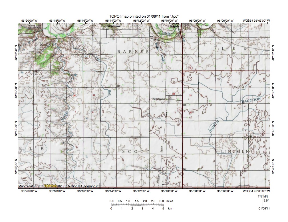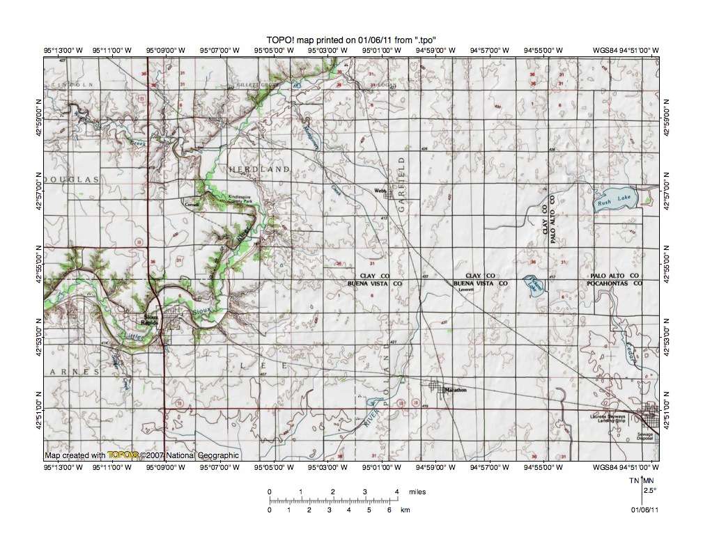 Figure 3: North Raccoon River headwaters area. United States Geological Survey map digitally presented using National Geographic Society TOPO software.
