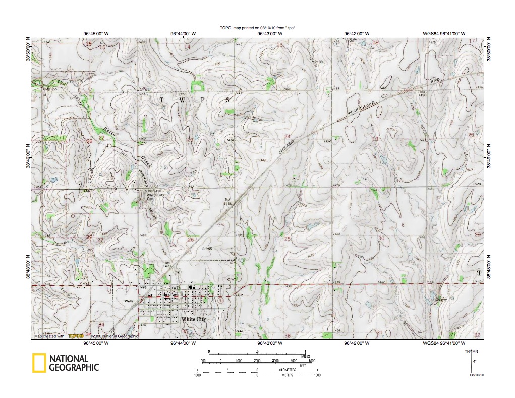 Figure 2: Kansas River-Neosho River drainage divide area detailed location map. United States Geological Survey map digitally presented using National Geographic Society TOPO software.