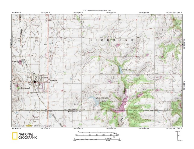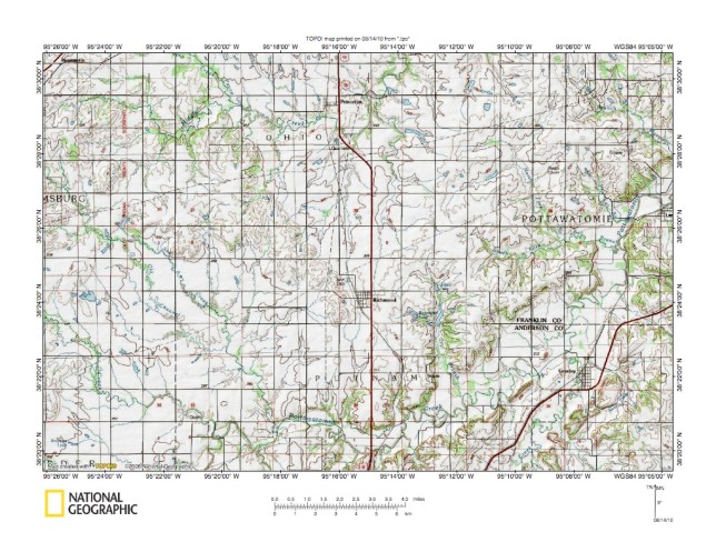 - The purpose of this essay is to use topographic map interpretation methods to explore Kansas River-Pottawatomie Creek drainage divide area landform origins in Douglas, Franklin, and Anderson Counties, Kansas, USA. Map interpretation methods can be used to unravel many geomorphic events leading up to formation of present-day drainage routes and development of other landform features. While each detailed topographic map feature provides detailed evidence to be explained, the solution must be consistent with explanations for adjacent area map evidence as well as solutions to big picture map evidence puzzles. I invite readers to improve upon my solutions and/or to propose alternate solutions that better explain evidence and are also consistent with adjacent map area and big picture evidence. Readers may do so either by making comments here or by writing and publishing their own essays and then by leaving a link to those essays in a comment here.