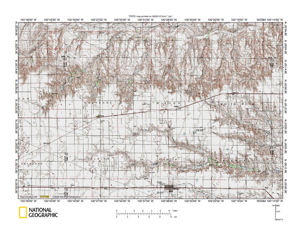 Figure 8: Page Creek-Bazine Dry Creek drainage divide area. United States Geological Survey map digitally presented using National Geographic Society TOPO software.