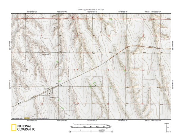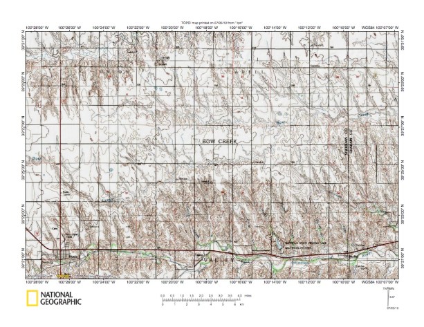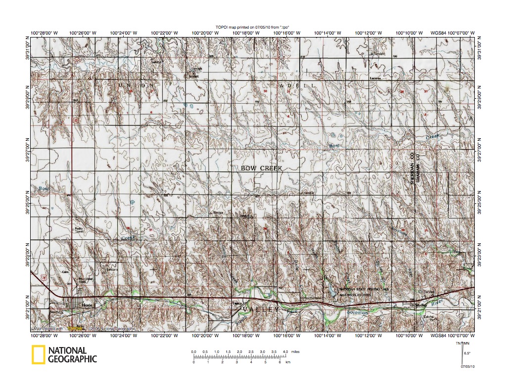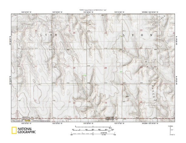 Figure 7: Prairie Dog Creek-North Fork Solomon River drainage divide area. United States Geological Survey map digitally presented using National Geographic Society TOPO software.