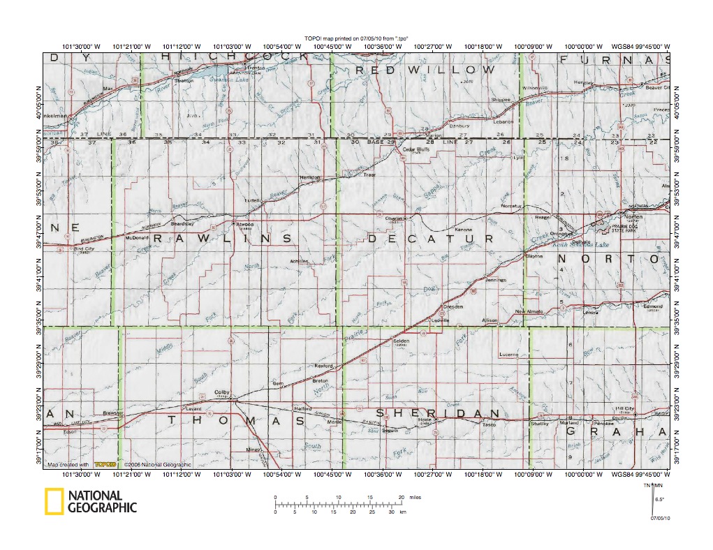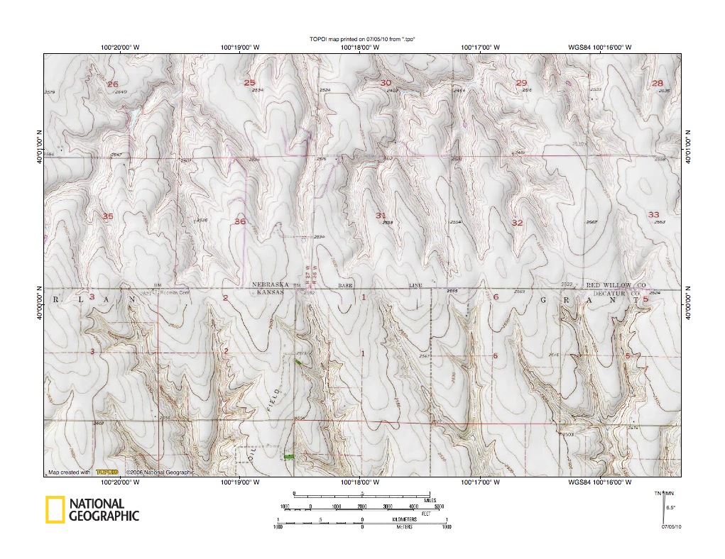 Figure 3: Beaver Creek-Sappa Creek drainage divide area. United States Geological Survey map digitally presented using National Geographic Society TOPO software.
