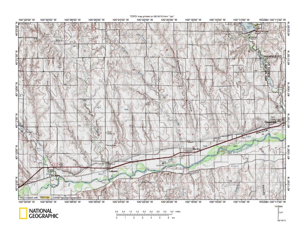 Figure 10: Republican River valley between Red Willow Creek and Medicine Creek. United States Geological Survey map digitally presented using National Geographic Society TOPO software.