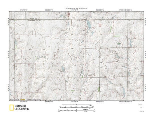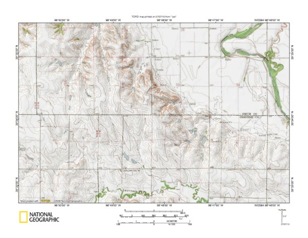 Figure 9: North Fork Solomon River-South Fork Solomon River drainage divide area east of Kirwin Reservoir. United States Geological Survey map digitally presented using National Geographic Society TOPO software.