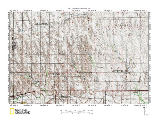 Figure 7a: Detailed map of North Fork Solomon River-Bow Creek drainage divide area south of Speed. United States Geological Survey map digitally presented using National Geographic Society TOPO software.