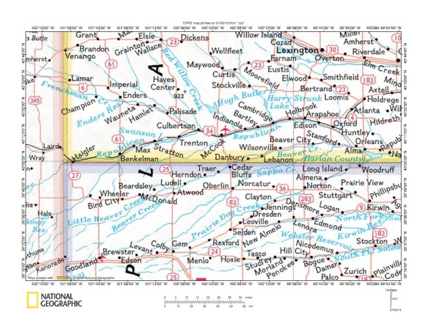 Figure 1: Republican River-Beaver Creek drainage divide area location map (select and click on maps to enlarge). National Geographic Society map digitally presented using National Geographic Society TOPO software.