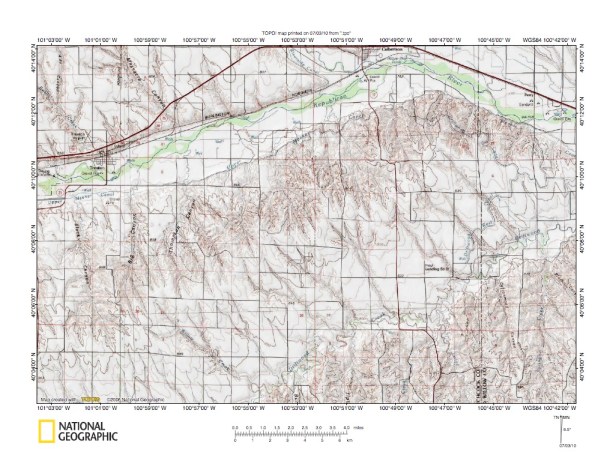 Figure 8: Republican River-North Fork Driftwood Creek drainage divide area. United States Geological Survey map digitally presented using National Geographic Society TOPO software.