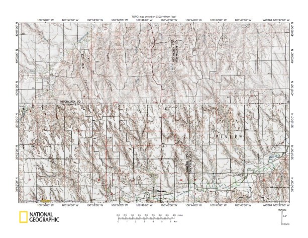 Figure 5: Detailed map of Republican River-Beaver Creek drainage divide area south of McCook. United States Geological Survey map digitally presented using National Geographic Society TOPO software.