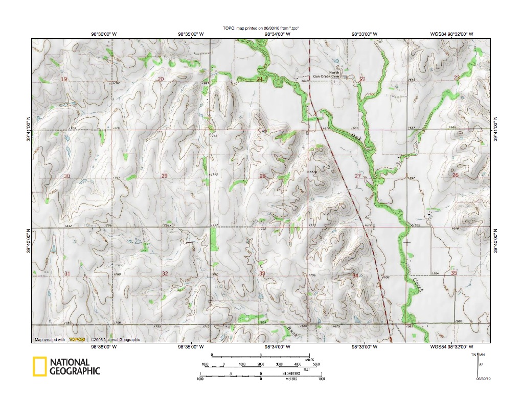 Figure 5: Republican River-Walnut Creek drainage divide area. United States Geological Survey map digitally presented using National Geographic Society TOPO software.