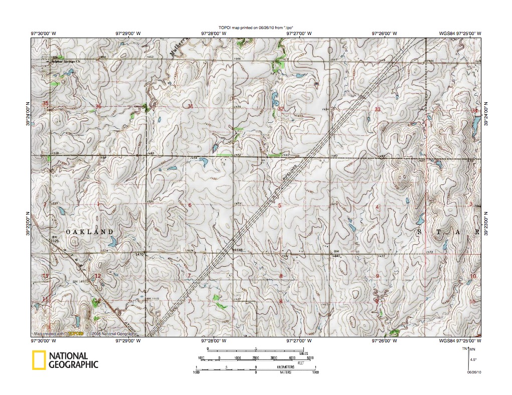 Figure 2: Republican River-Solomon River drainage divide area detailed location map. United States Geological Survey map digitally presented using National Geographic Society TOPO software.