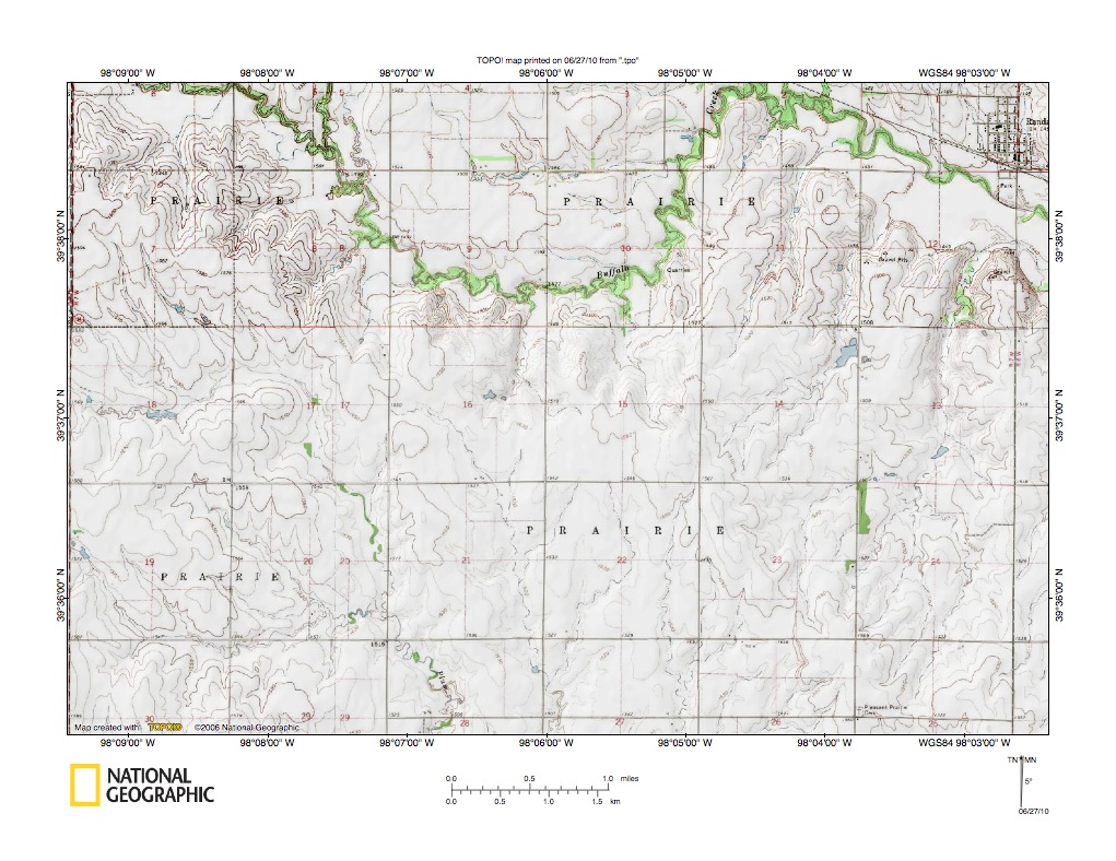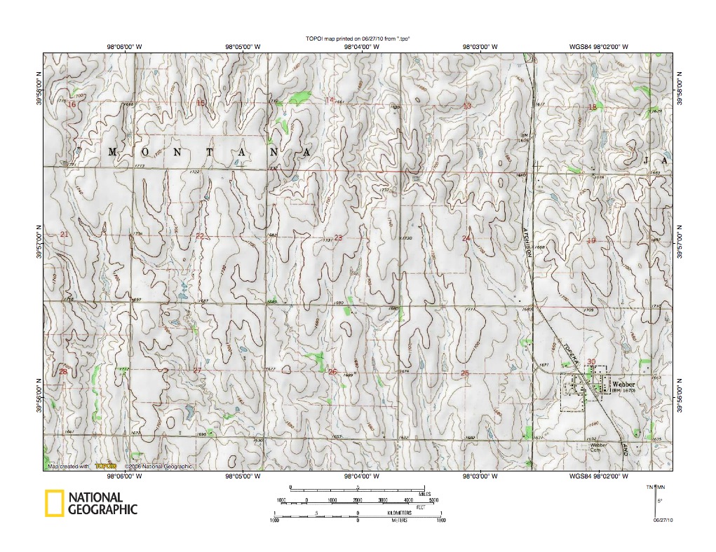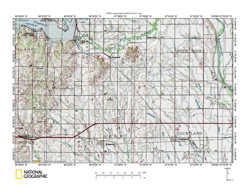 Figure 4: Detailed map of Republican River-White Rock Creek drainage divide area. United States Geological Survey map digitally presented using National Geographic Society TOPO software.