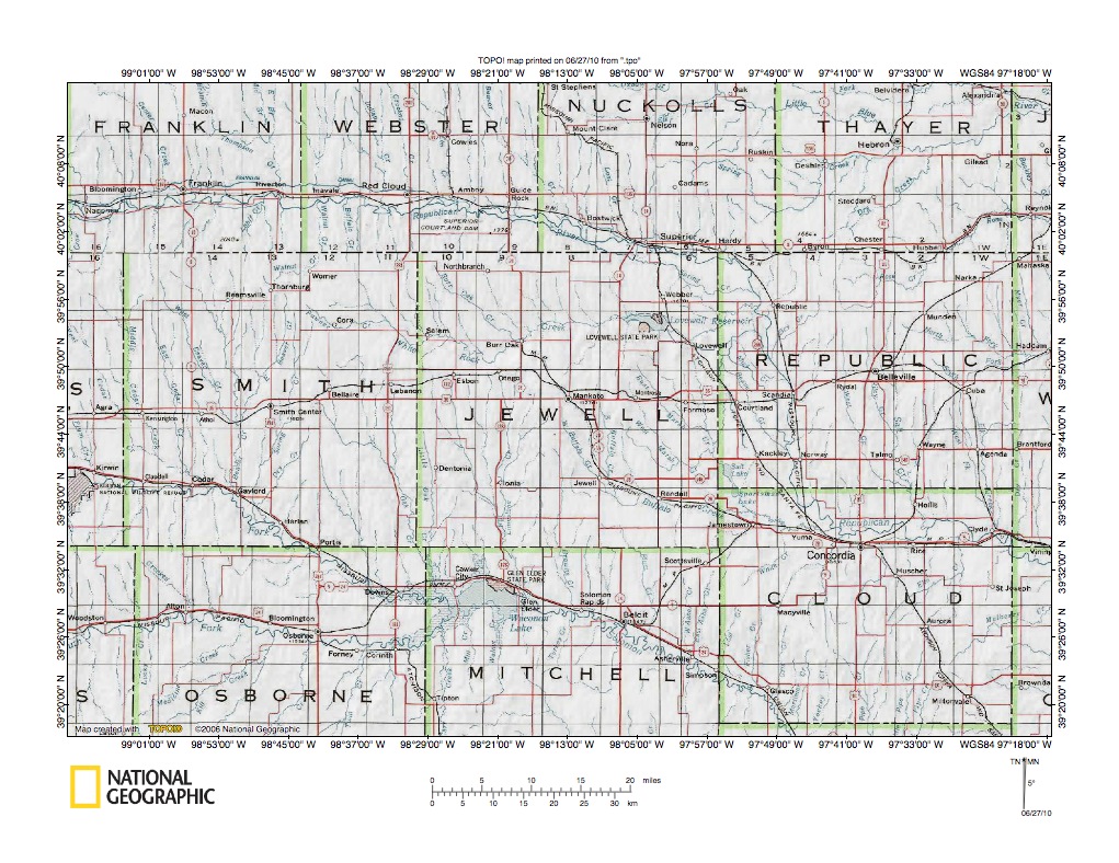 - The purpose of this essay is to use topographic map interpretation methods to explore Republican River-Solomon River drainage divide area landform origins in Nuckolls County, Nebraska and Jewell and Mitchell Counties, Kansas, USA. Map interpretation methods can be used to unravel many geomorphic events leading up to formation of present-day drainage routes and development of other landform features. While each detailed topographic map feature provides detailed evidence to be explained, the solution must be consistent with explanations for adjacent area map evidence as well as solutions to big picture map evidence puzzles. I invite readers to improve upon my solutions and/or to propose alternate solutions that better explain evidence and are also consistent with adjacent map area and big picture evidence. Readers may do so either by making comments here or by writing and publishing their own essays and then by leaving link to those essays in a comment here.