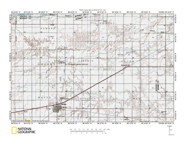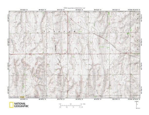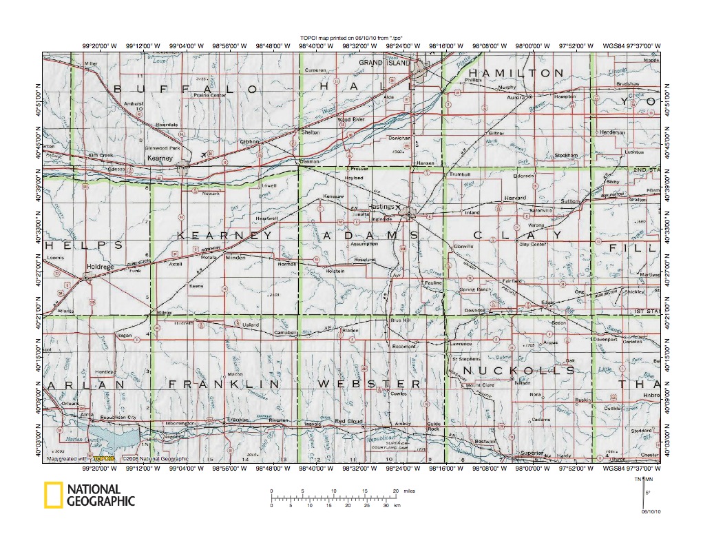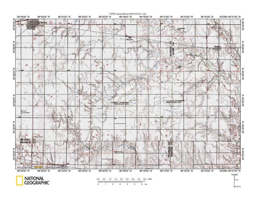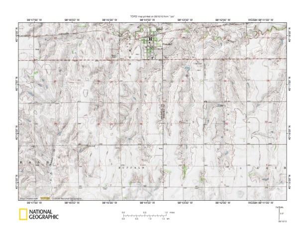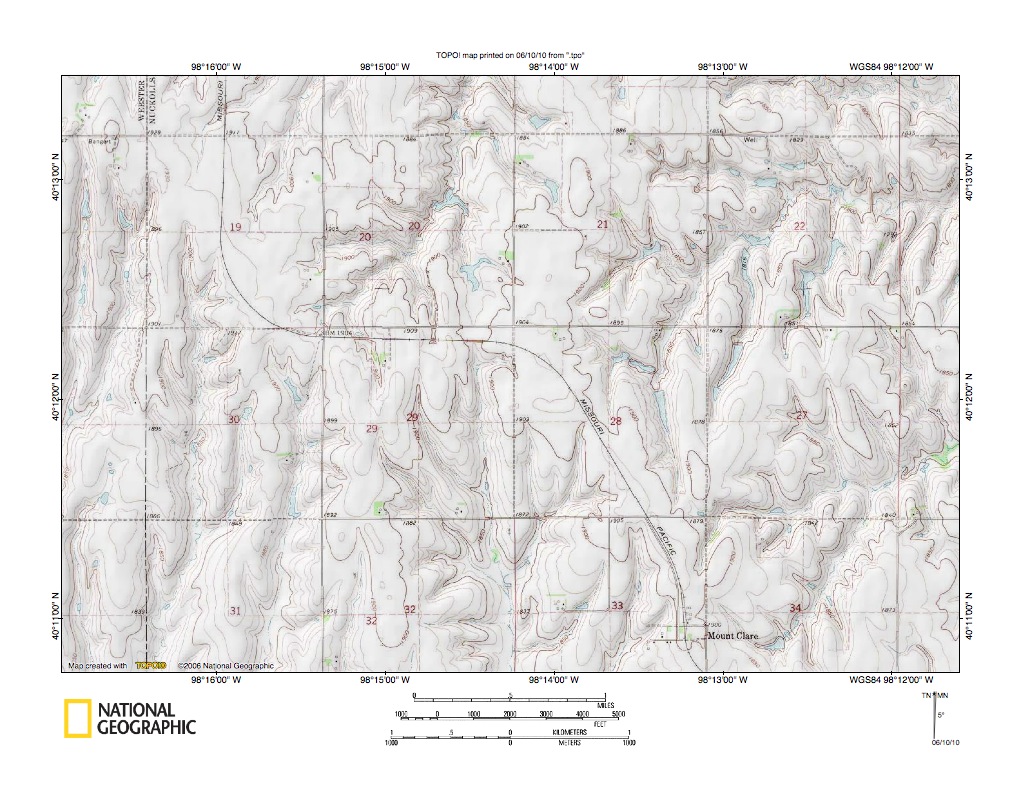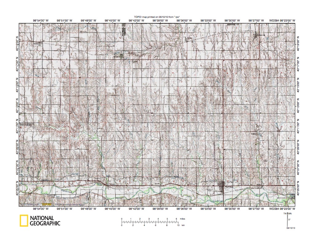 Figure 6: Detailed map of Little Blue River-Republican River drainage divide area. United States Geological Survey map digitally presented using National Geographic Society TOPO software.