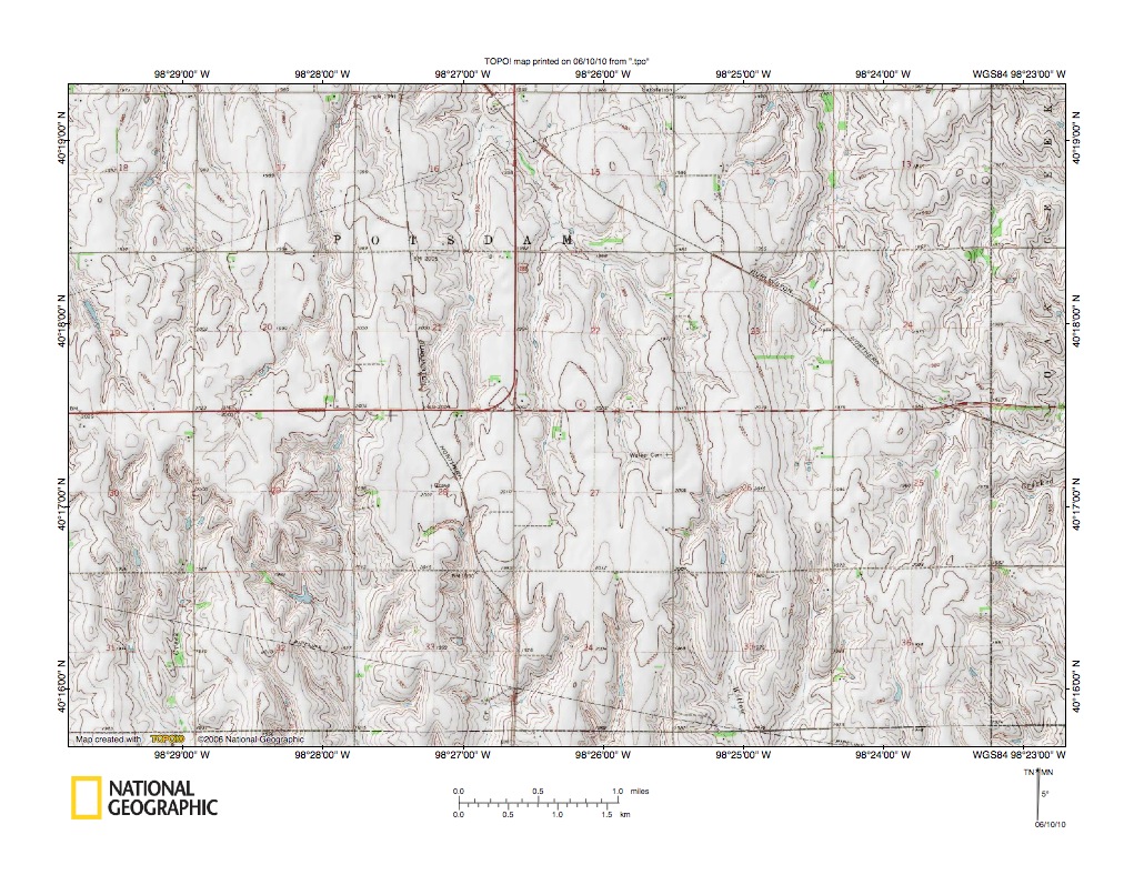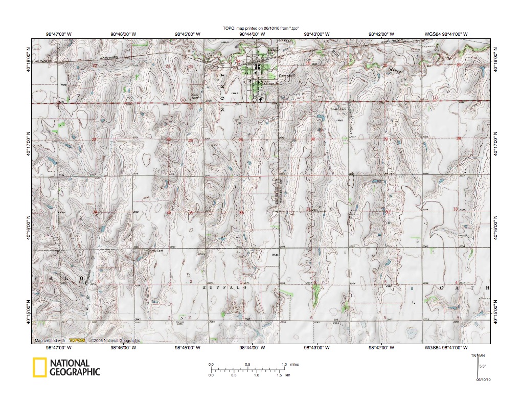 Figure 5: Little Blue River-Republican River drainage divide area west end. United States Geological Survey map digitally presented using National Geographic Society TOPO software.
