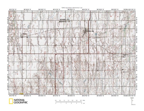 Figure 8: Detailed map of Little Blue River-Republican River drainage divide area near Blue Hill. United States Geological Survey map digitally presented using National Geographic Society TOPO software.