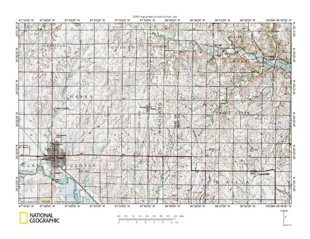 Figure 9: West Fancy Creek-Republican River drainage divide area north and east of Clay Center, Kansas. United States Geological Survey map digitally presented using National Geographic Society TOPO software.