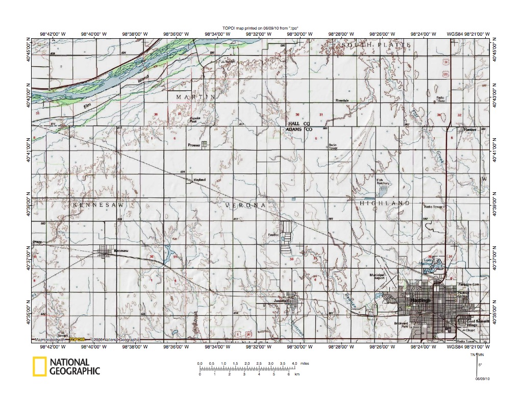 Figure 4: Platte River-Little Blue River drainage divide area. United States Geological Survey map digitally presented using National Geographic Society TOPO software.