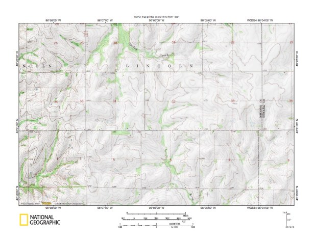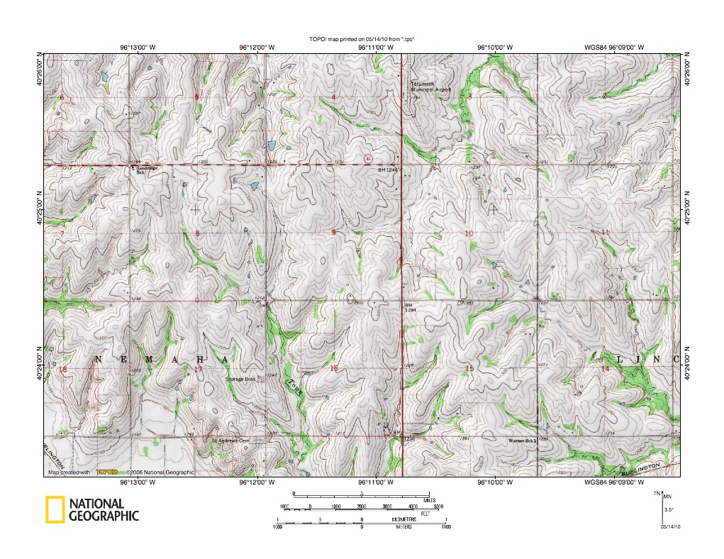 Figure 4: South Fork Little Nemaha River-North Fork Big Nemaha River drainage divide area. United States Geological Survey map digitally presented using National Geographic Society TOPO software.