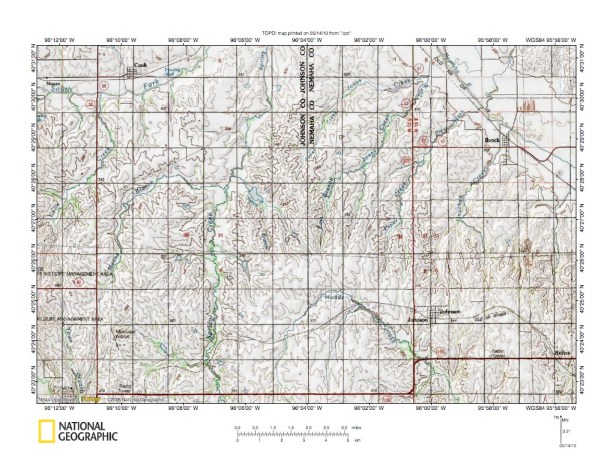 Figure 5: Detailed map of South Fork Little Nemaha River-North Fork Big Nemaha River drainage divide area. United States Geological Survey map digitally presented using National Geographic Society TOPO software.