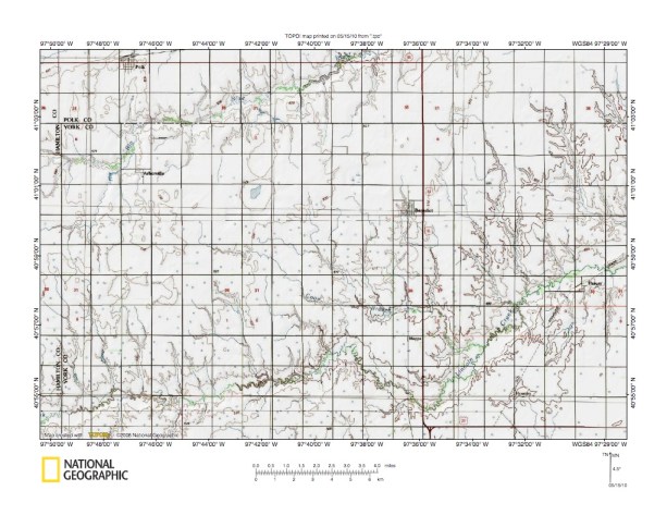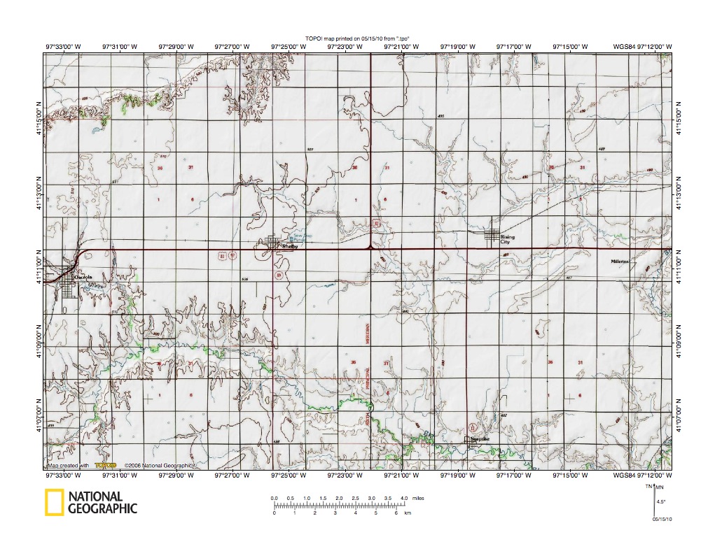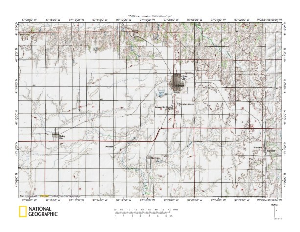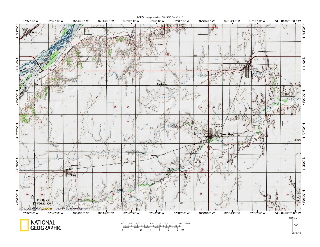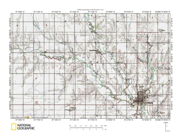 Figure 6: Platte River-Big Blue River drainage divide area east of Osceola. United States Geological Survey map digitally presented using National Geographic Society TOPO software.