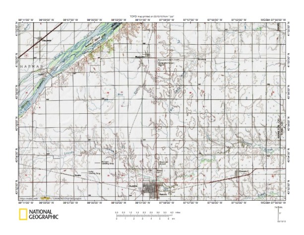 Figure 8: Platte River-North Branch Big Blue River drainage divide area. United States Geological Survey map digitally presented using National Geographic Society TOPO software.