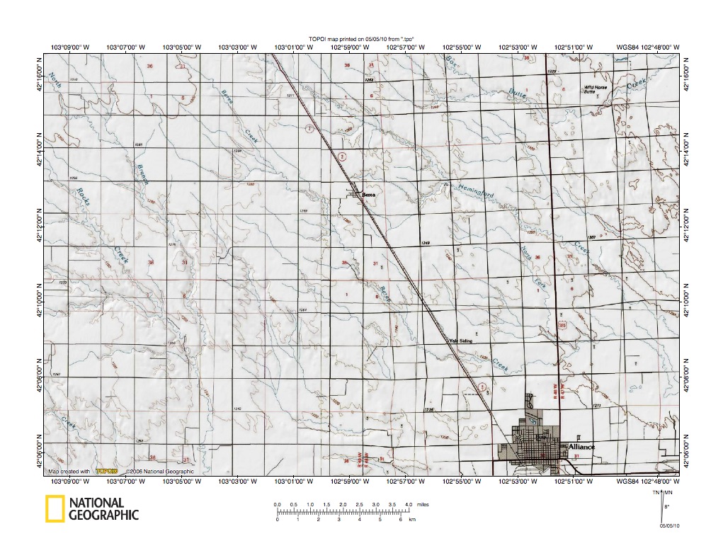 Figure 9: Snake Creek tributaries in the region northwest of Alliance. United States Geological Survey map digitally presented using National Geographic Society TOPO software.