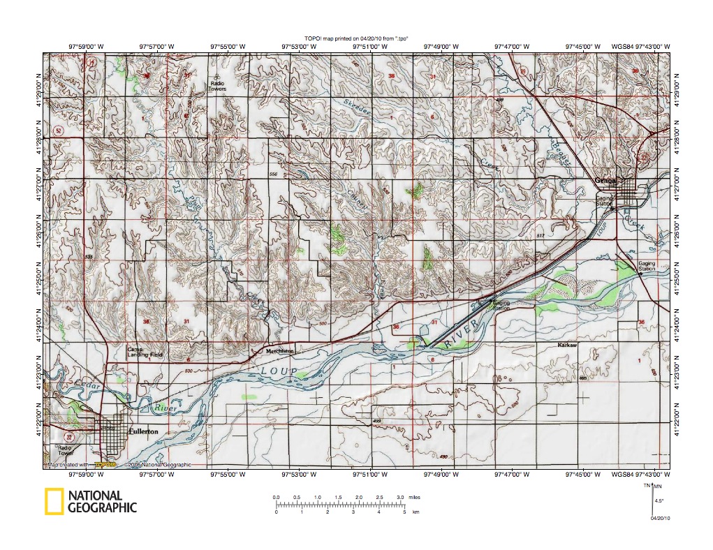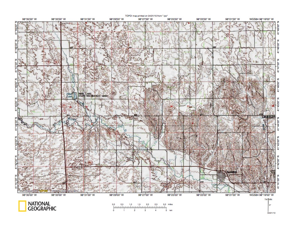 Figure 9: Cedar River valley northwest from Spalding.United States Geological Survey map digitally presented using National Geographic Society TOPO software.