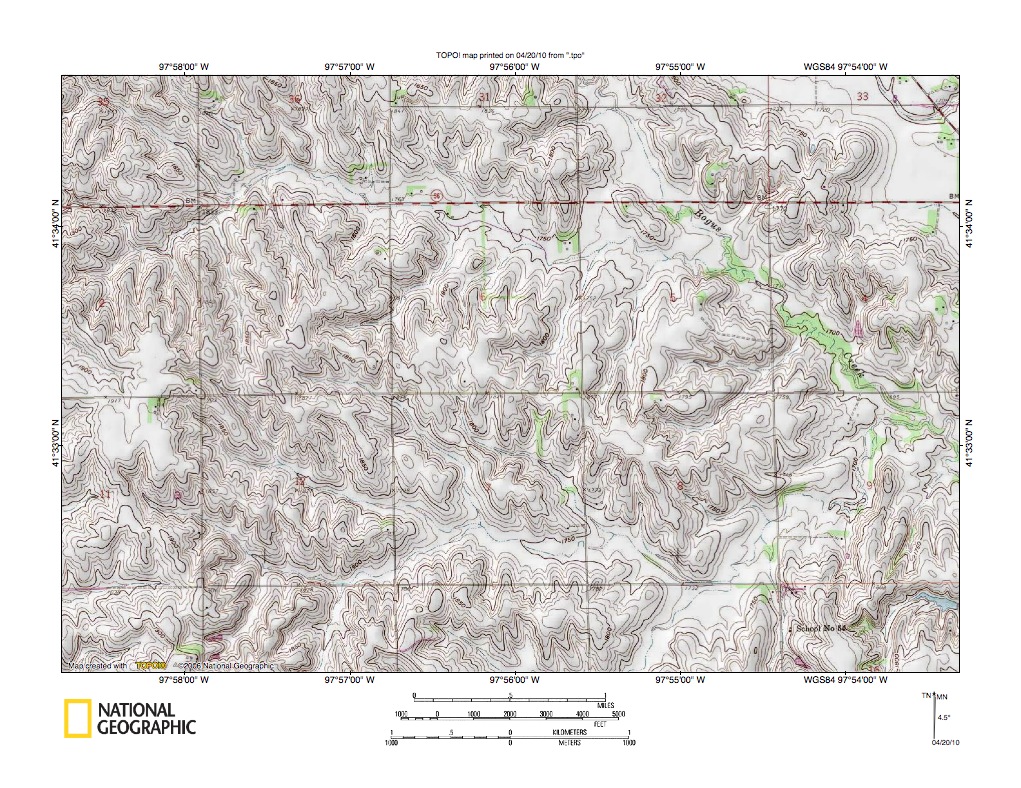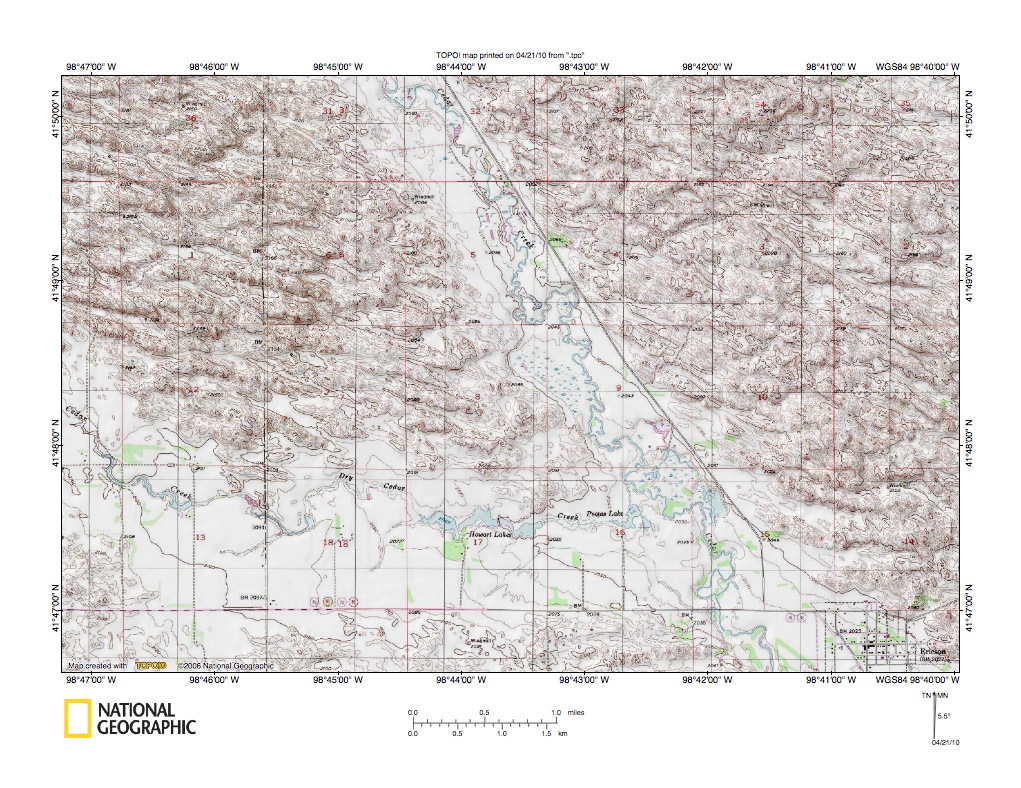 Figure 10a: Cedar Creek-Dry Cedar Creek confluence near Ericson.United States Geological Survey map digitally presented using National Geographic Society TOPO software.