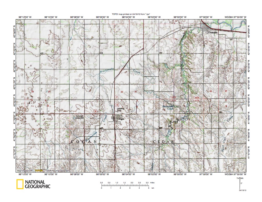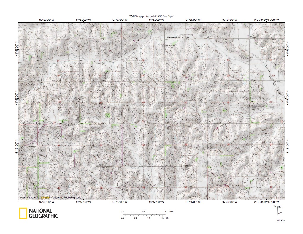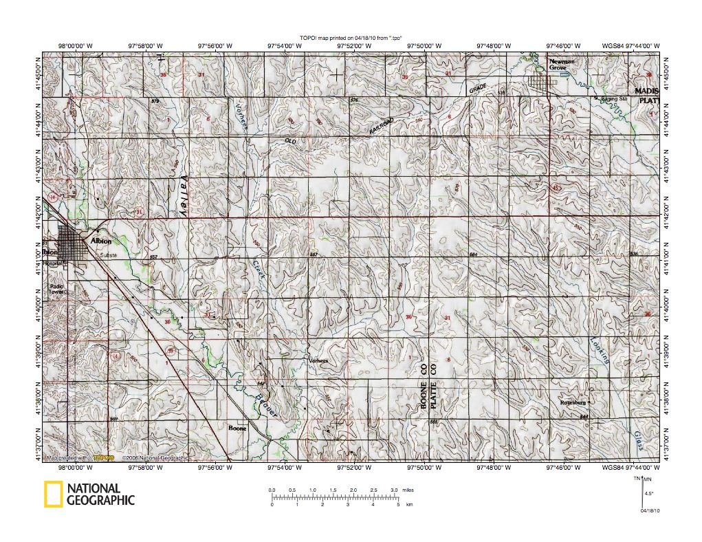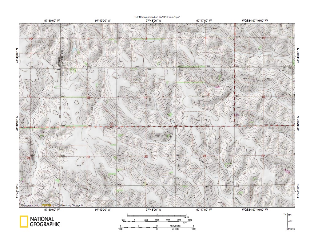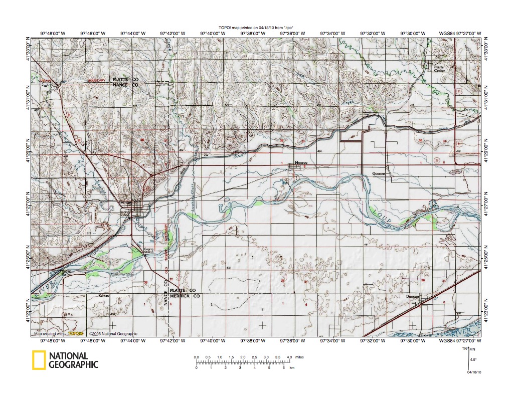 Figure 10: Beaver Creek and Shell Creek enter the Platte River valley. United States Geological Survey map digitally presented using National Geographic Society TOPO software.