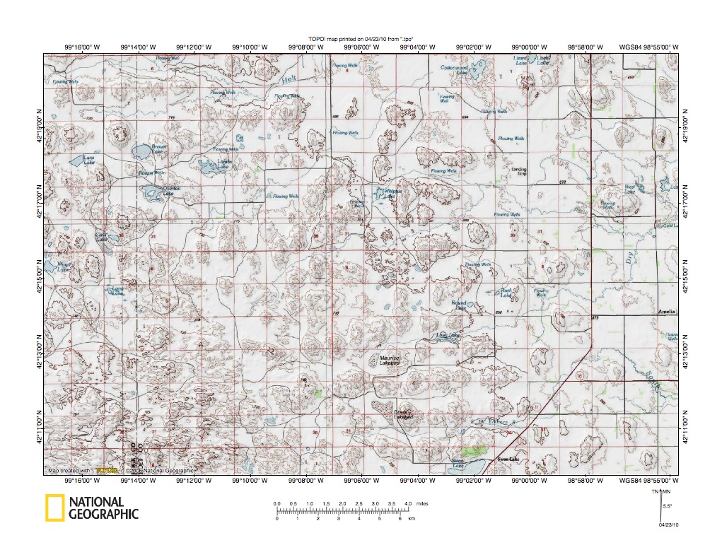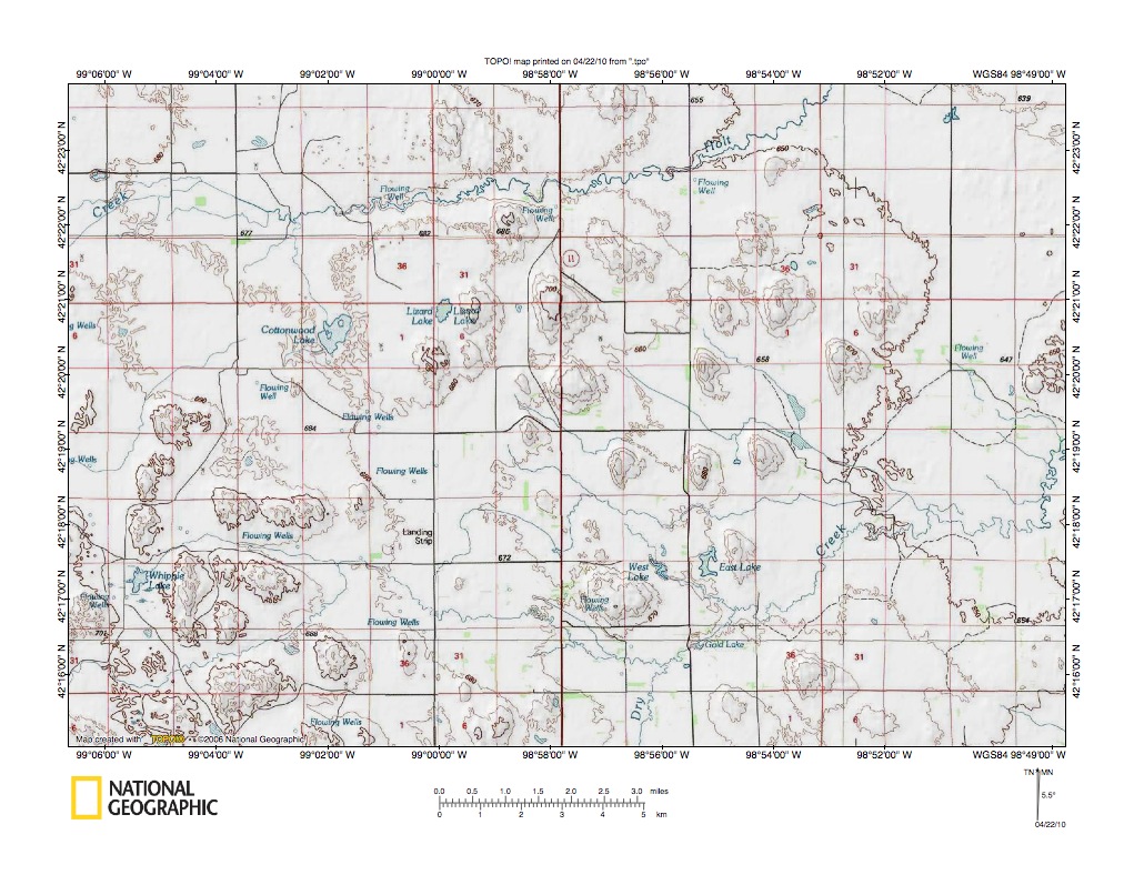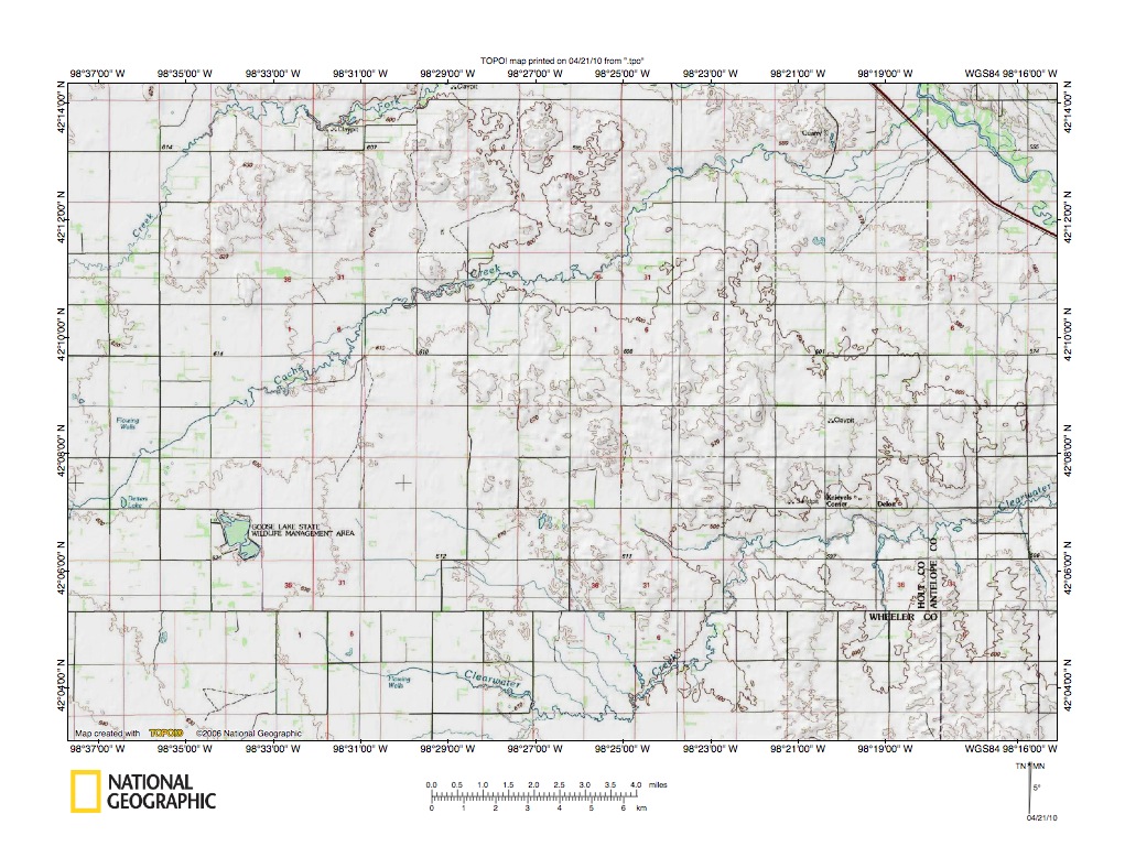 Figure 10: South Fork Elkhorn River-Cedar River drainage divide in Holt County. United States Geological Survey map digitally presented using National Geographic Society TOPO software.